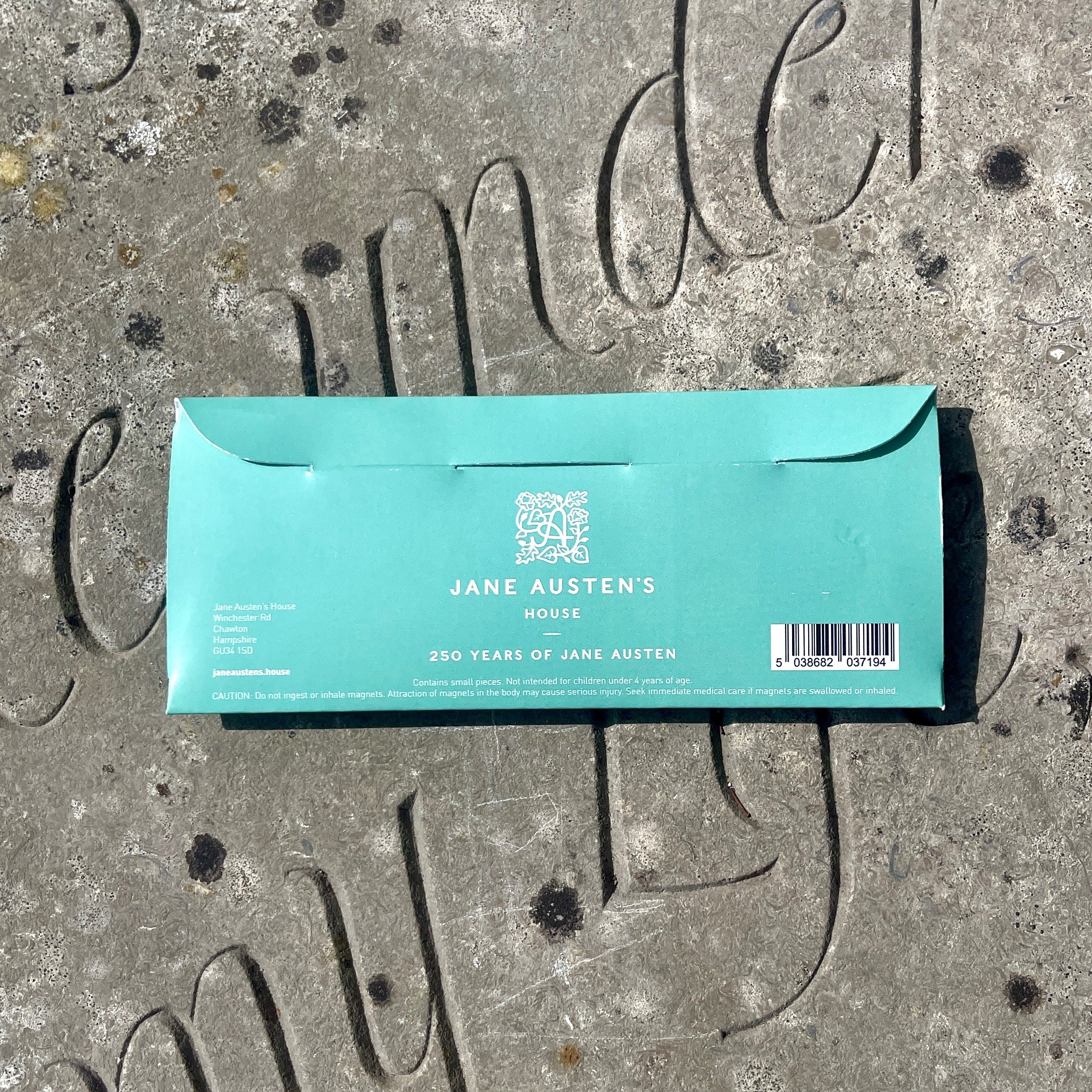 This beautiful set of four crystal magnets features the iconic Jane Austen's House historical wallpapers and the garden view of the house itself. They are approximately 3cm across and come in a set that is perfect for a gift or as a souvenir.